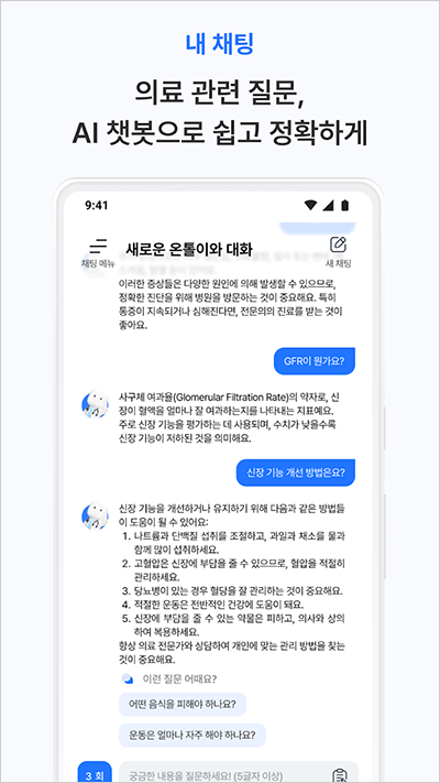 - 음성/화상 상담 : 의료진 또는 건강 전문가와 음성상담 및 화상상담을 받을 수 있습니다.