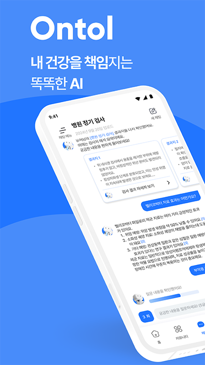온톨은 검사 결과지와 건강에 대한 궁금증을 쉽게 해결해주는 AI 기반 앱입니다. 검사 결과지 사진을 올리면 AI가 이해하기 쉬운 의료 용어로 설명해주고 다양한 건강 관련 질문을 AI에게 물어볼 수 있고, 추천 질문 기능을 통해 더 많은 정보를 얻을 수 있습니다. 건강 고민을 나누고 사람들과 의견을 교환하여 건강 관리와 고민 해결에 도움을 주는 커뮤니티 서비스를 이용할 수 있습니다.