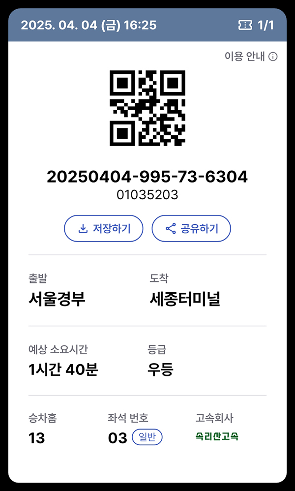 ⇨ 결제가 완료되면 "고속버스티머니" 앱의 홈화면의 [예매확인 및 변경]에서 예매한 티켓을 확인할 수 있습니다.