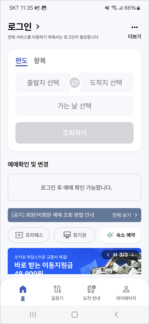 고속버스 티머니 앱, 버스 예매 어플 설치 사용법