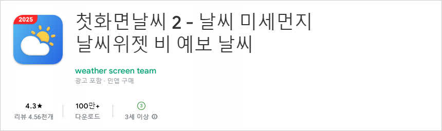 🔔 Google Play(첫화면 날씨2 앱 기준) 평점 4.3 / 리뷰 4.56천개 / 다운로드 100만+