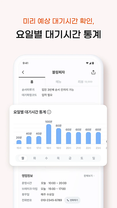 ✔️ 인기 맛집 대기시간 요일별 통계 제공