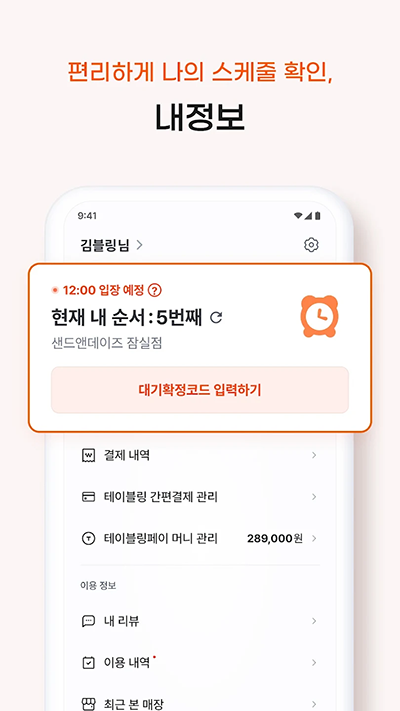 ✔️ 순서미루기 기능으로 도착 시간이 늦어도 유연하게 조정 가능 - 전화 없이 간편한 ‘즉시예약’