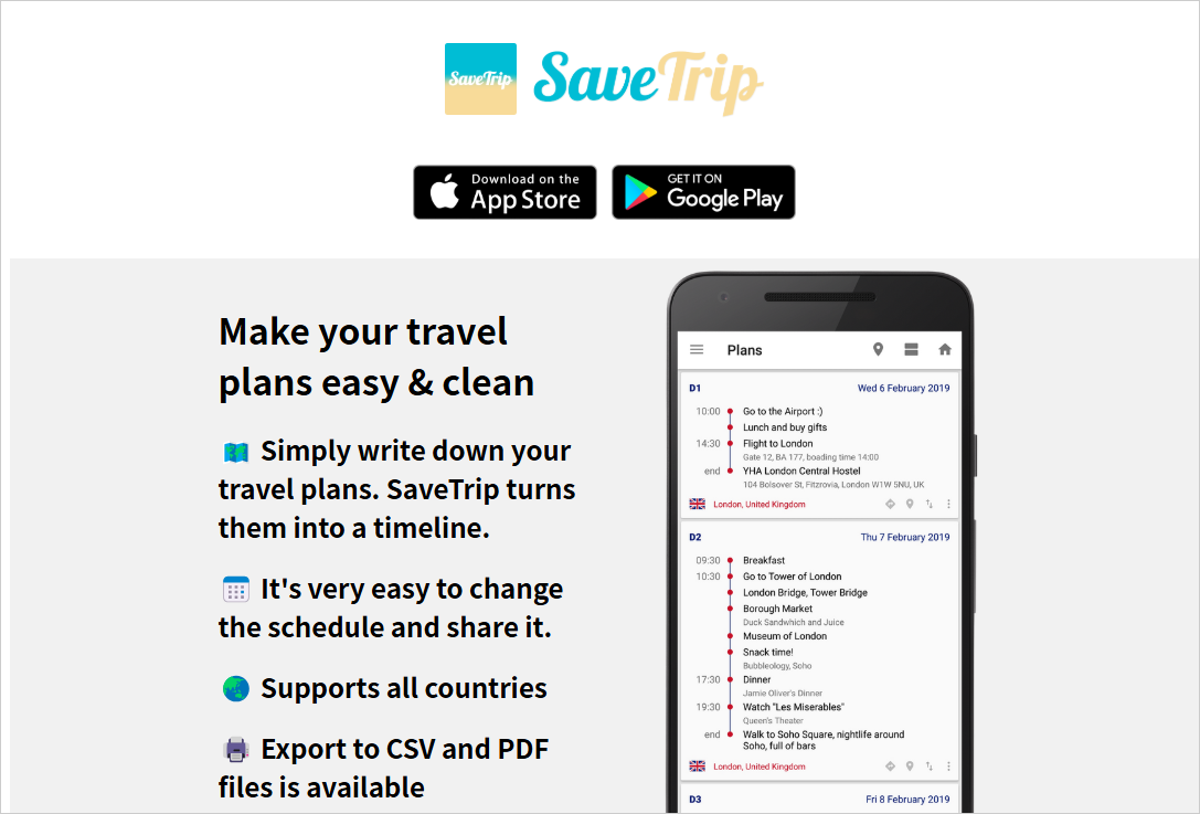 세이브트립은 여행 경비 관리부터 일정, 체크리스트까지 한 번에 해결할 수 있는 스마트한 앱이에요! 여행 일정을 타임라인으로 시각화하고, 각 국가별 통화 자동 변환 기능을 통해 지출 내역을 쉽게 관리할 수 있습니다. 여행 일정, 가계부, 노트, 체크리스트, 여행 일기 등을 한 곳에 기록할 수 있는 올인원 앱입니다. 인터넷 연결 없이도 사용 가능하며, 환율 자동 계산과 경비 지출 통계 그래프 제공 등 다양한 기능을 제공합니다. 이 앱은 📌구글 플레이스토어와 📌애플 앱스토어에서 모두 이용할 수 있습니다.