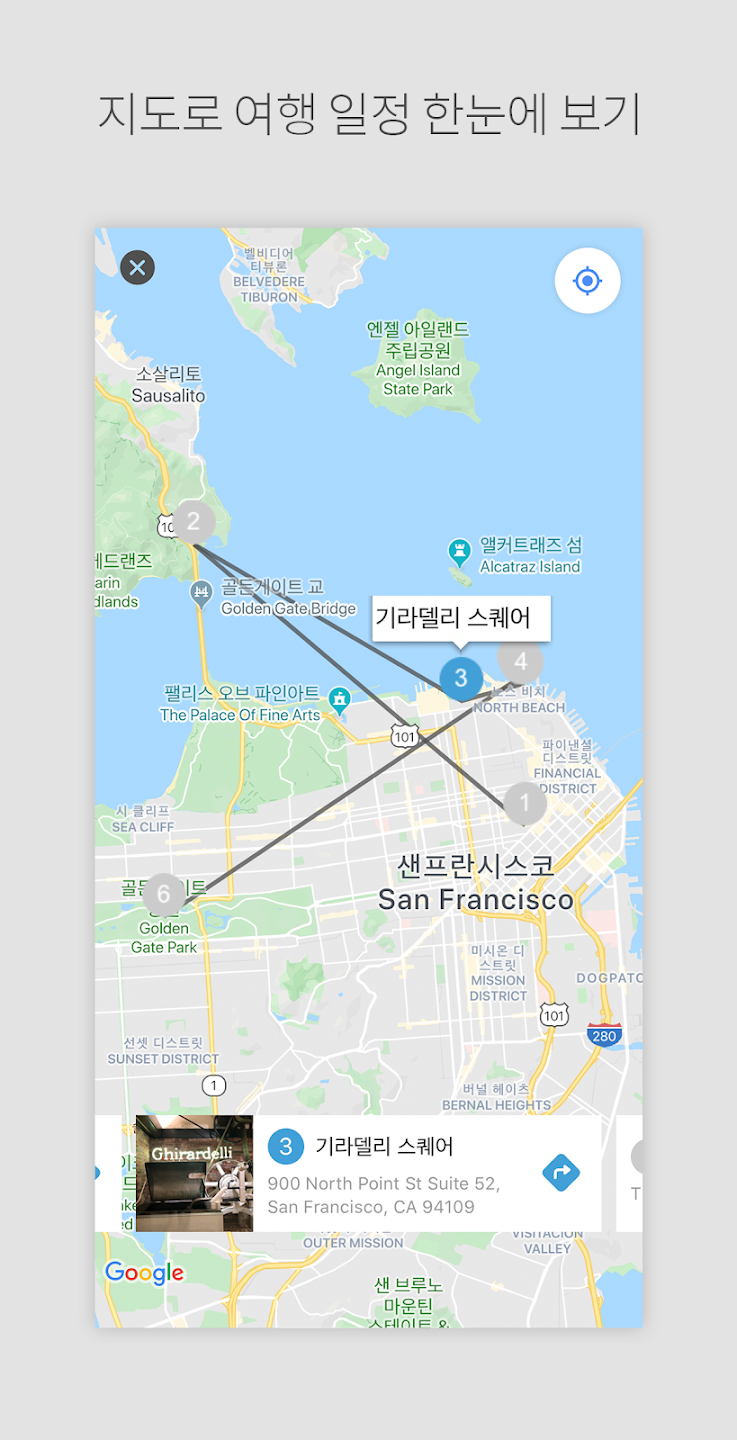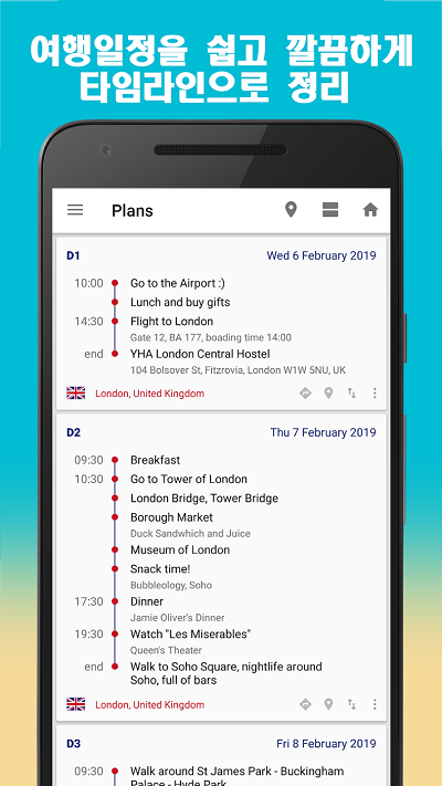 - 일정 : 타임라인으로 한눈에 보는 일정, 지도로 일정 한눈에 보기, 장소 길 찾기 기능 제공 📅