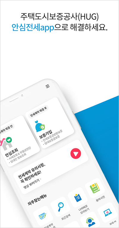안심전세 App은 국토교통부 전세사기 피해 방지방안에 따라 국토교통부, HUG, 한국부동산원이 손잡고 만든 전세사기 예방 플랫폼으로 개인 고객의 전세보증금반환보증, 임대보증금보증 신청부터 발급, 이행청구까지 한 번에 이용할 수 있는 원스톱보증서비스입니다. 전세 계약 전에 시시세조회 및 위험성 진단, 집주인의 숨겨진 정보를 투명하게 공개하고 전세계약 체결 후엔 편리하게 전세보증금반환 보증도 가입하고 신청할 수 있습니다.